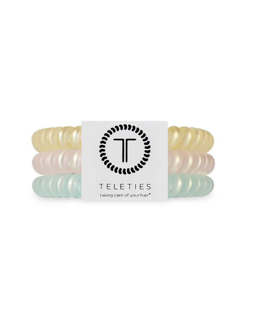 Hold your hair in place with ease and style! Piece of Paradise Small Hair Ties offer a strong grip without damage, doubling as a chic wrist accessory when not in use. Your new favorite hair essentials for Spring Break and Summer! Strong grip, no rip design for all-day hold Doubles as a stylish bracelet Durable and waterproof for all occasions Gentle on hair—prevents breakage, headaches, and creases These are perfect hair accessories for workouts, everyday wear, or bedtime to prevent hair damage. Upgrade your hair game with TELETIES - functional, fashionable, and made for every moment.