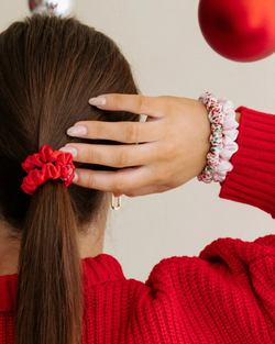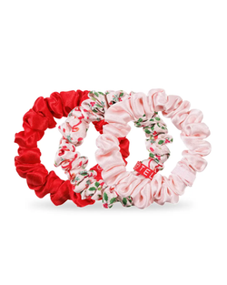 Keep your hair cozy and in place all night long with Blushmas Small Silk Scrunchies in Pink and Red. Their clever inner coil holds tight without slipping, all wrapped up in super-soft, natural silk!