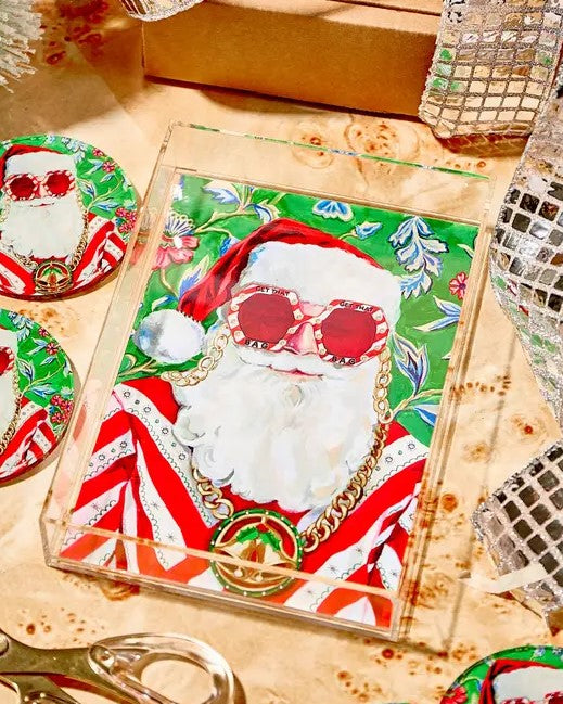 Get ready to impress all your guests this holiday season with the Swanky Santa Small Tray! Made of durable acrylic, this tray is perfect for serving up your favorite festive treats. Get ready to sleigh the holiday season!