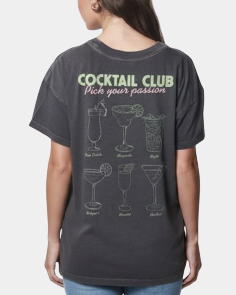 Raise a glass to retro vibes with this Cocktail Club graphic tee. Featuring a vintage-inspired design on soft black fabric, it's the perfect pick for anyone who loves a little nostalgia mixed with modern style.