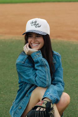 Join the Sports Mom Club in this charming black striped hat! Perfect for sideline cheers, carpool runs, or coffee dates between games, this playful piece celebrates the beautiful chaos of sports parenting.