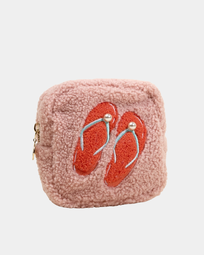 Wrapped in cloud-soft sherpa and lined with wipeable fabric, it keeps your essentials safe and stylish. The shiny gold zipper and pretty printed interior prove that function can be fun. Collect them all in coordinating sizes for the ultimate cozy accessory squad.