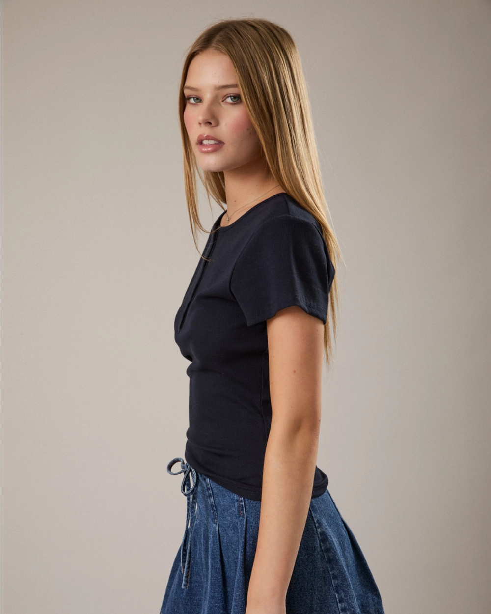 The Henley top is anything but boring. Short sleeves keep things breezy, while the soft knit fabric feels as good as it looks. Whether you're dressing it up with a blazer or keeping it casual, this timeless piece plays well with everything in your closet.