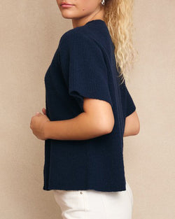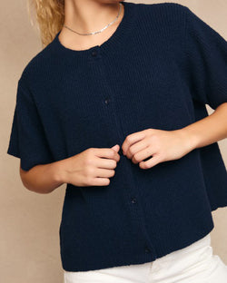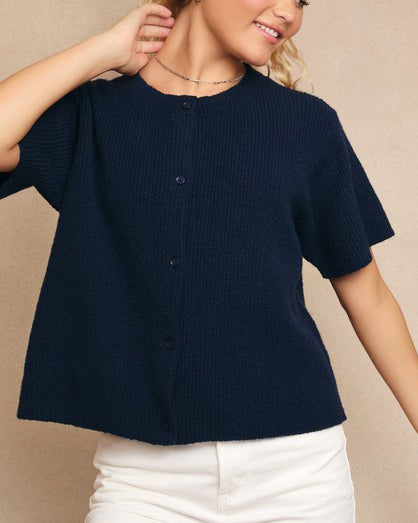 This soft sweater cardigan features a ribbed texture, short sleeve and a button down front. The perfect wardrobe staple to style buttoned as a top or leave open for layering.