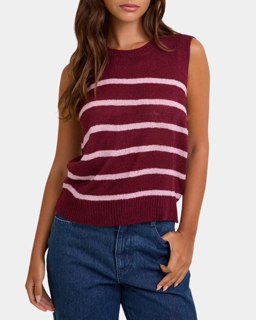 Effortless style meets endless possibilities with this sleeveless sweater top. The timeless round neckline and clean silhouette make it the ultimate wardrobe essential—layer it, tuck it, or wear it solo.