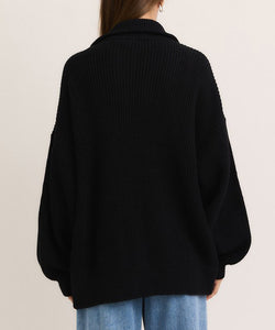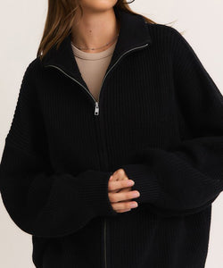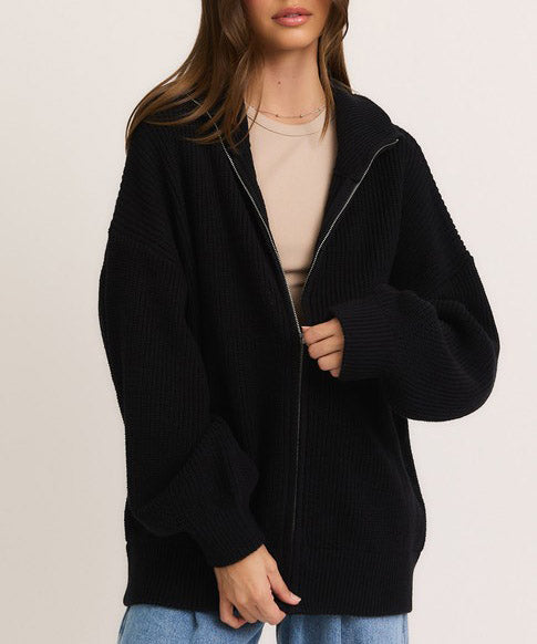 This soft sweater cardigan features a zip up front, long sleeves and an oversized fit. Easy to style and comfortable to wear, this cardigan is sure to be a wardrobe staple for the season and beyond.