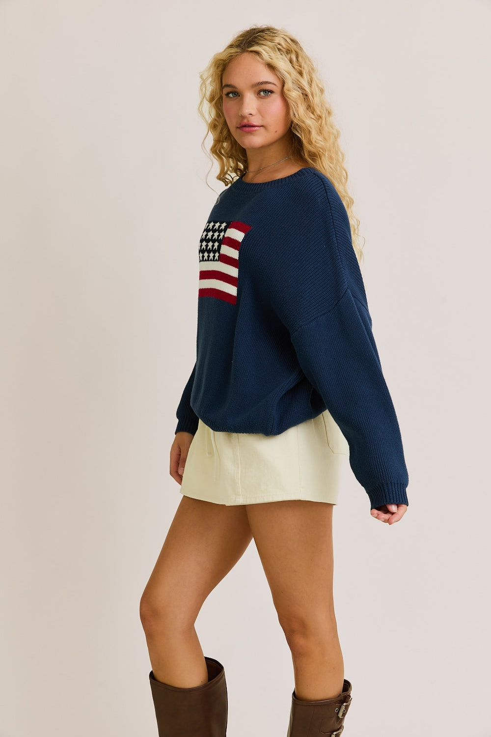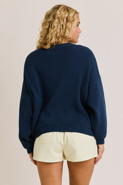 Wave your patriotic spirit with this playful Flag Sweater in classic navy. Perfect for showing your pride with a fun twist, this cozy knit brings comfort and character to any casual outfit.