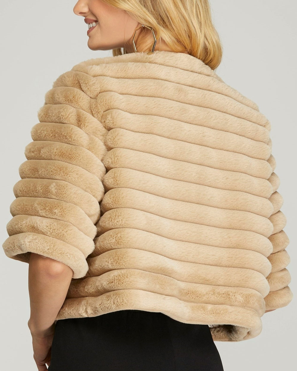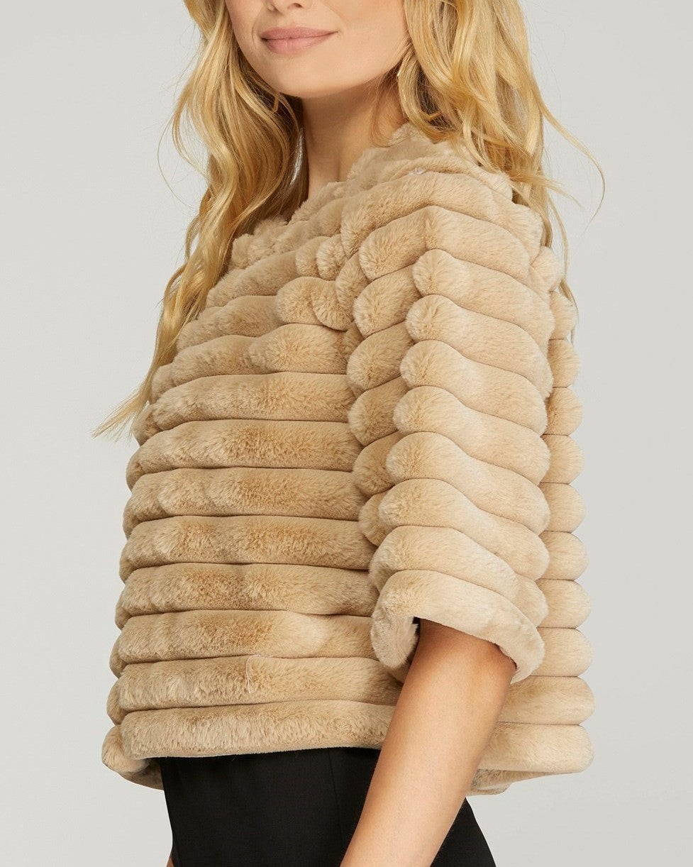 Introducing our new Faux Fur Crop Jacket in Taupe! Stay cozy and stylish this winter with our trendy cropped jacket. Made from high-quality faux fur, this jacket will keep you warm while also making a statement. Perfect for any fashion-forward individual.