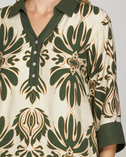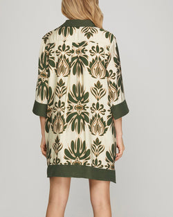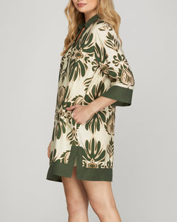 This printed mini dress features half sleeves, pockets at the sides and a collared v-neckline. Lightweight and comfortable, this dress is versatile and cute.