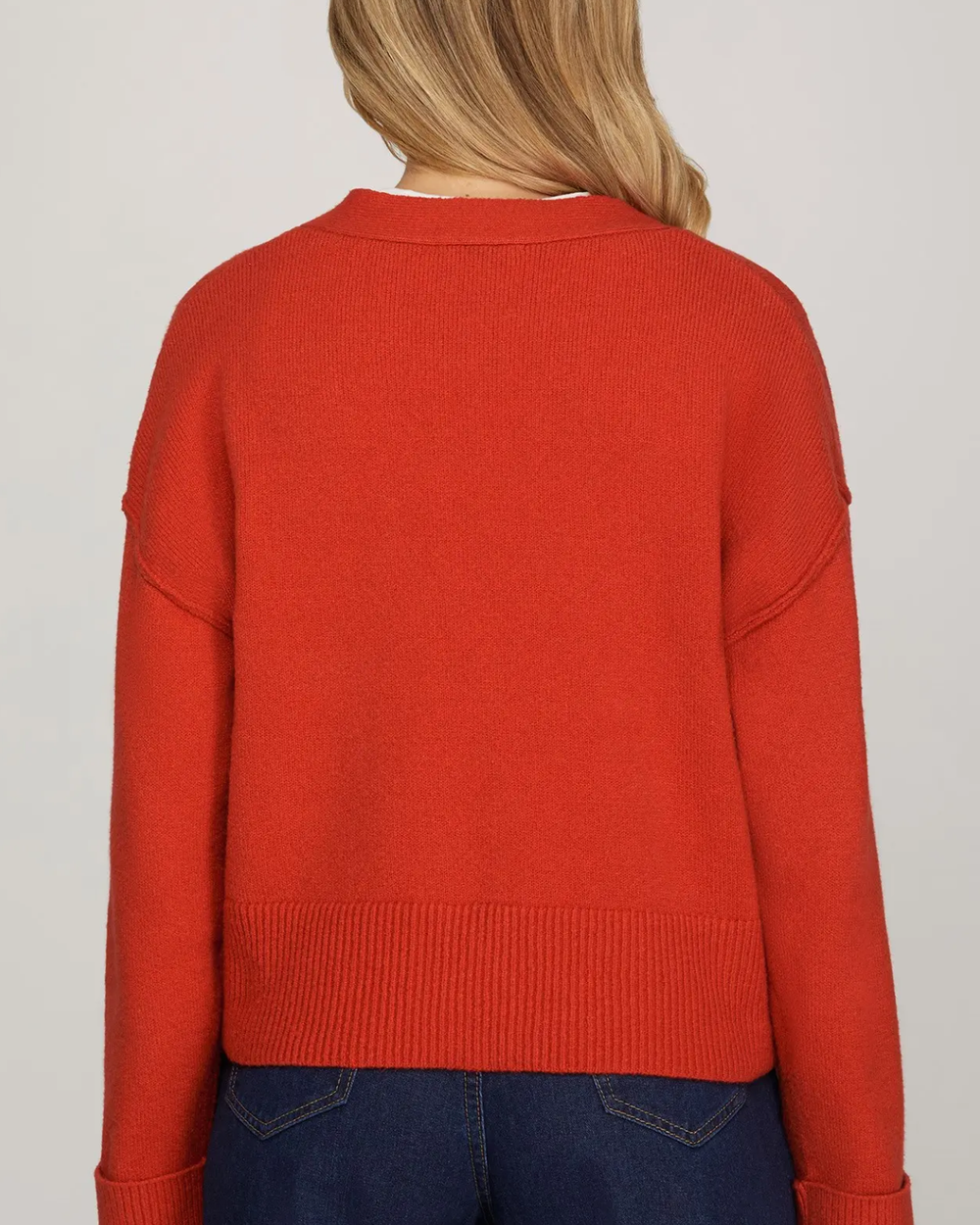 This long sleeve knit cardigan features elegant gold oversized buttons that add a contemporary flair to a timeless silhouette. Crafted for fall, its breathable knit fabric provides warmth without bulk, making it an essential layering piece for transitional weather. The button-down design ensures versatility, allowing it to be styled open or closed for a polished, on-trend look.