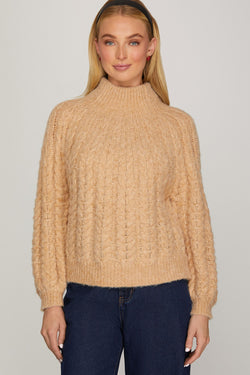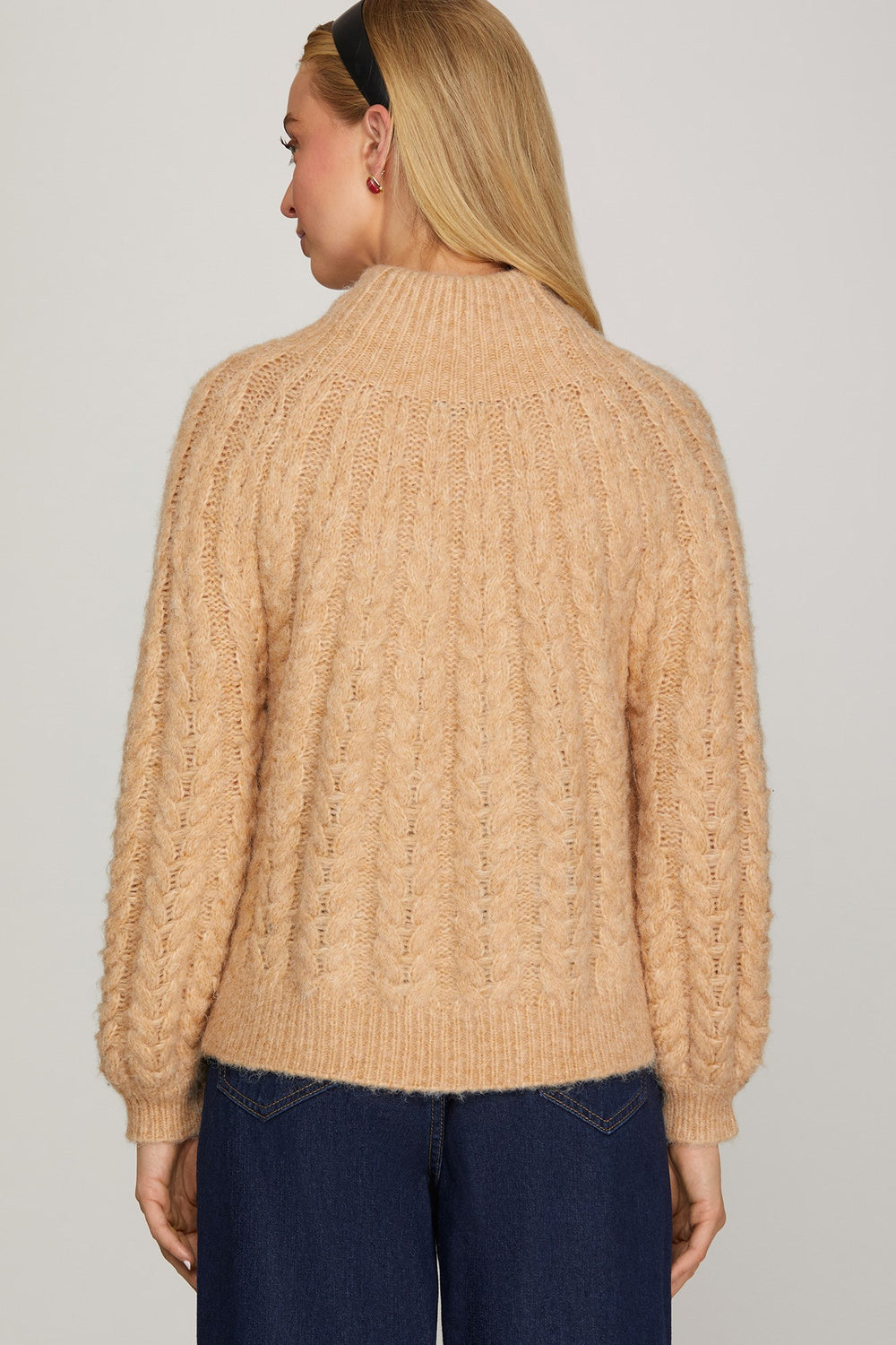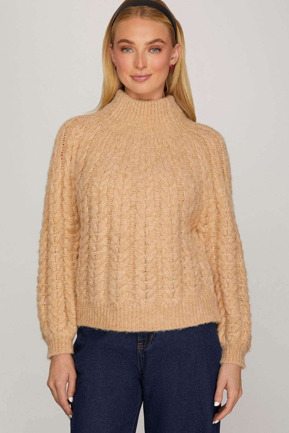 Elevate your fall wardrobe with this Cable Knit Sweater in a versatile taupe shade. Featuring a refined mock neck and long sleeves, its soft, cozy fabric offers warmth and comfort without sacrificing style. This timeless wardrobe staple pairs effortlessly with both casual and polished looks, making it an essential piece for cooler seasons.