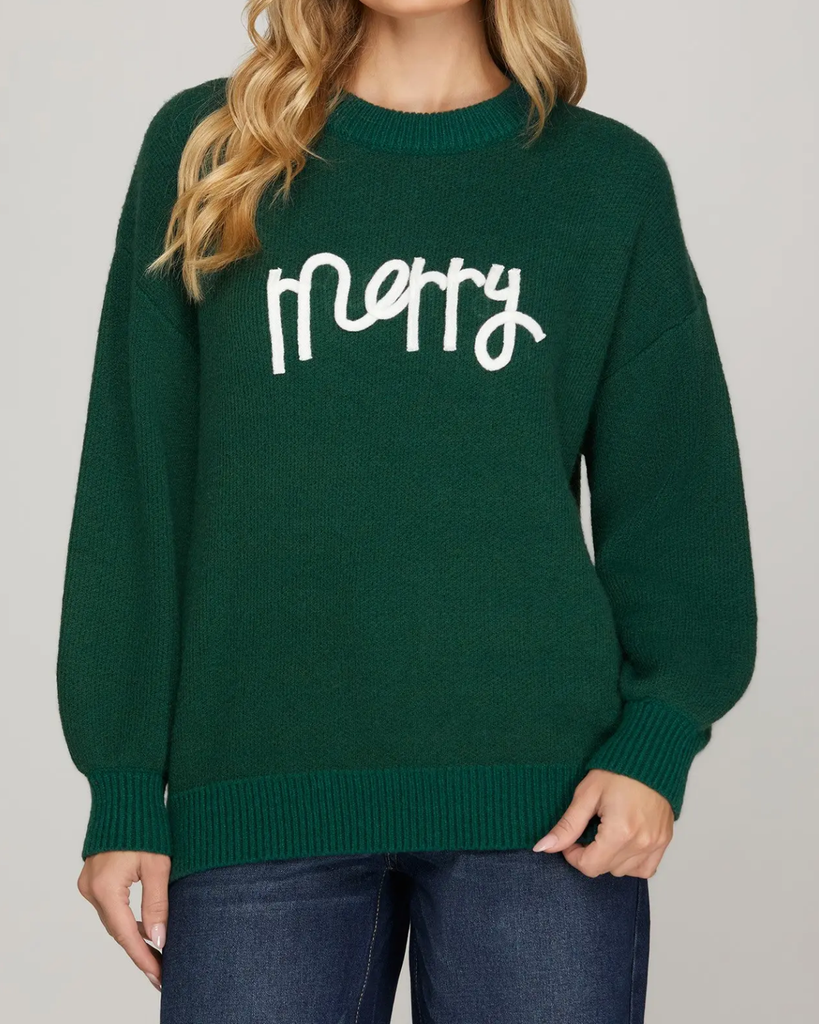Get cozy and jolly with the Merry Sweater Top in vibrant green! This long-sleeve pullover is perfect for spreading festive cheer while keeping you comfy all season long.