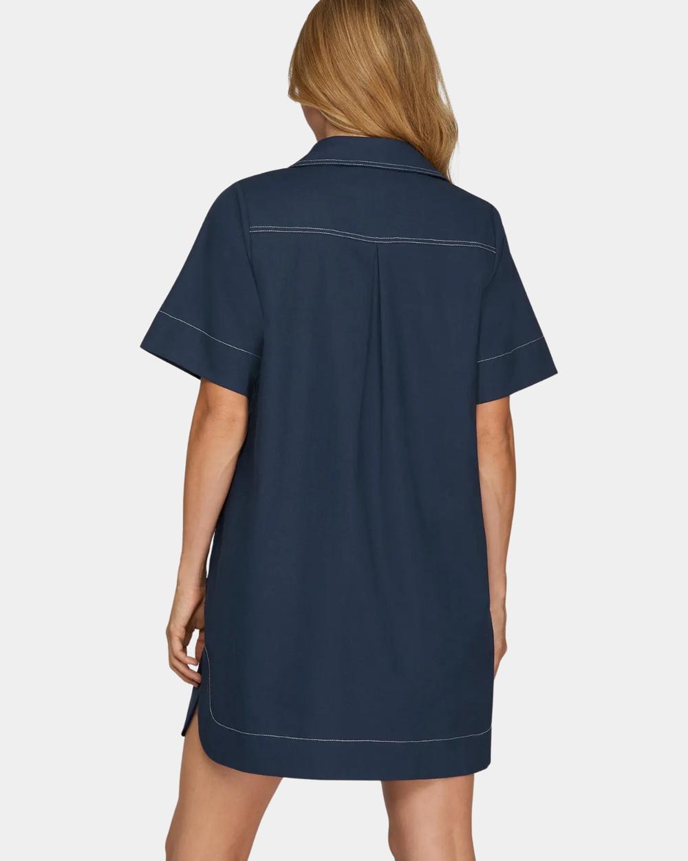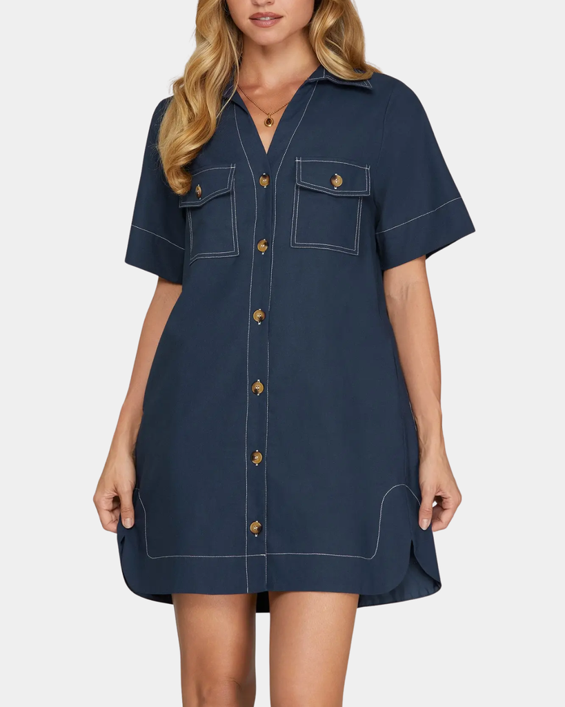 Your new favorite navy mini—short sleeves, button-down front, and all the versatility you need. Pair it with sneakers for casual charm or heels for instant polish.
