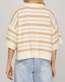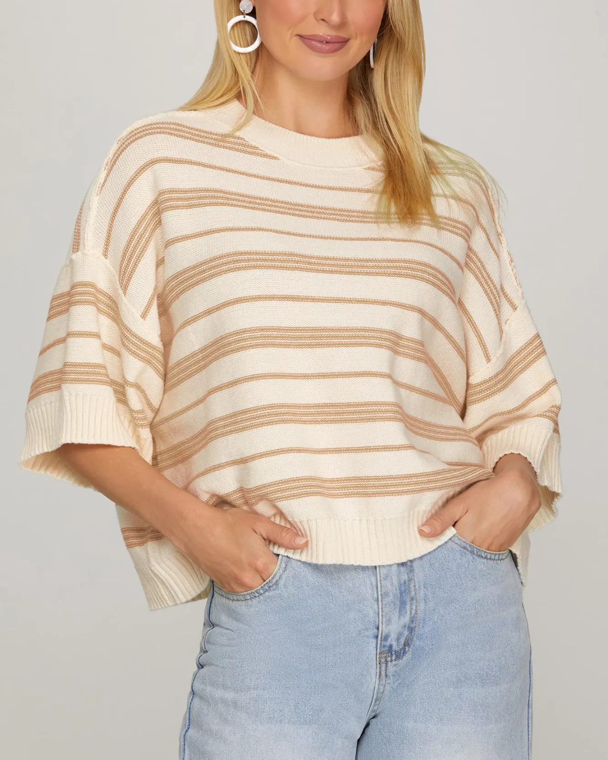 Effortlessly chic and cozy, this half-sleeve striped sweater top pairs perfectly with everything in your closet. The soft, breathable fabric keeps you comfortable all day, while the classic round neckline and taupe tones add timeless appeal.