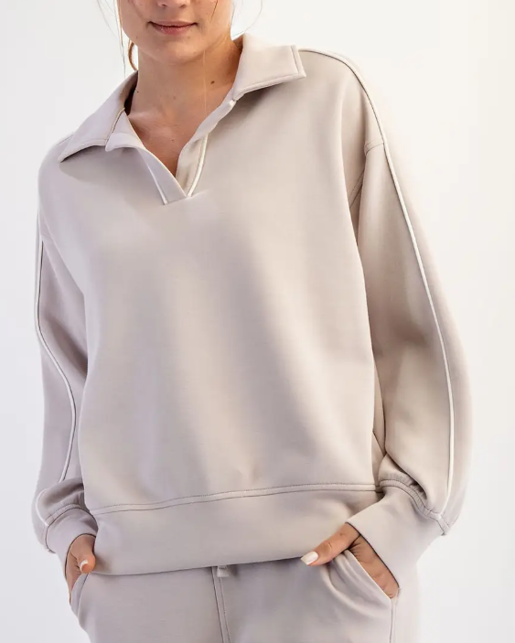 Elevate your everyday style with this polo top, crafted from silky smooth and lightweight modal scuba fabric. Featuring sleek piping details and a luxurious feel, it's the perfect blend of comfort and polish for daily wear.