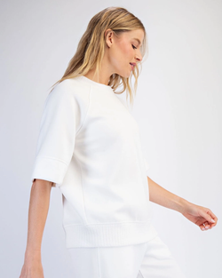 This cream modal top blends comfort with style, featuring textured ribbed trim that elevates the simple silhouette. Layer it, tuck it, or wear it solo—it's the perfect piece for any mood.