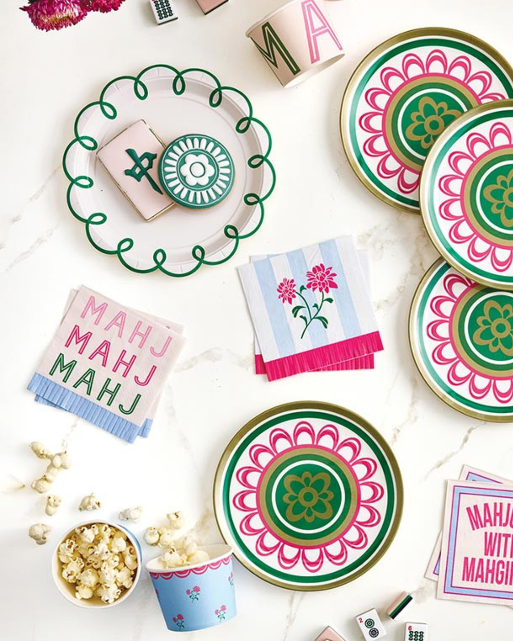 Transform your table into a style statement with these cheeky "MAHJ" napkins. Bursting with color and personality, they're the perfect companion for game nights, cocktail hours, or any gathering that deserves a dash of fun.