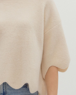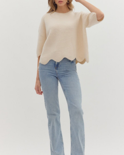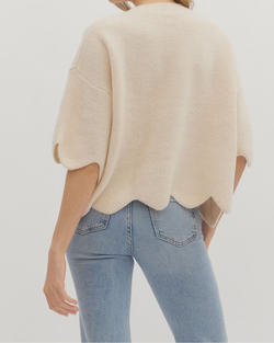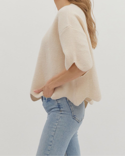 Cozy up in style with this Cream Scallop Hem Sweater that adds a fun twist to your everyday look. Its relaxed fit makes it perfect for layering or lounging with a playful touch.