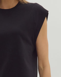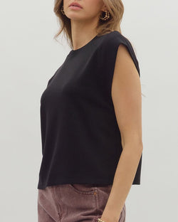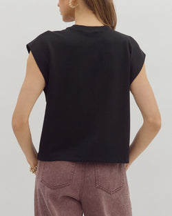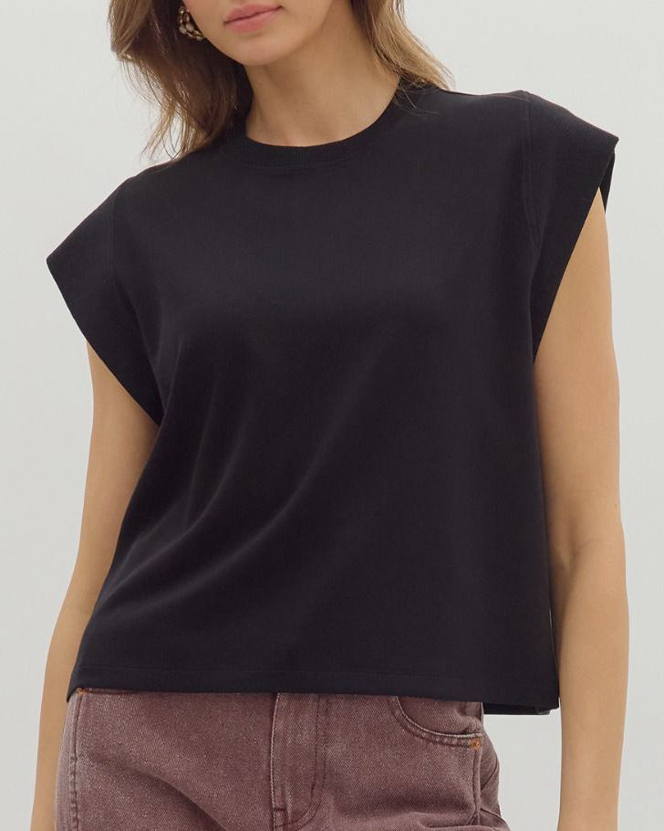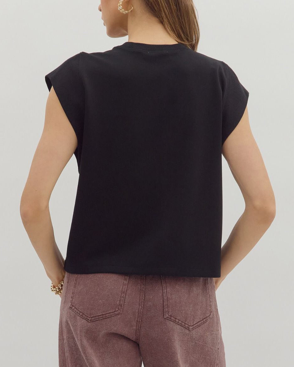 This solid knit top features cap sleeves, a crew neckline and a pullover silhouette. A wardrobe staple that is versatile and classic.