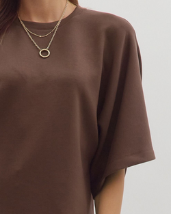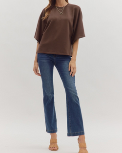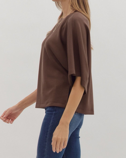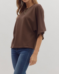 This brown elbow sleeve top offers a wide, relaxed fit that’s perfect for effortless style and comfort. Slip it on and let your casual vibes do all the talking.