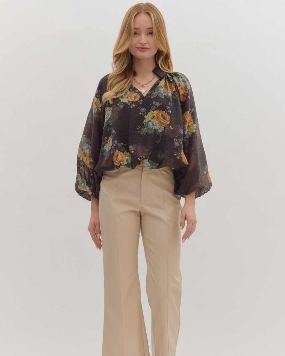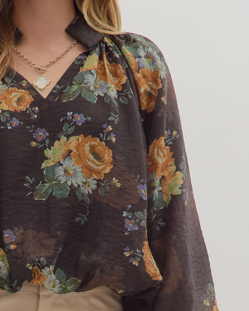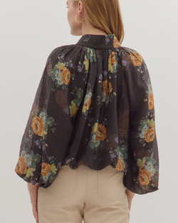 Bloom in style with this charming floral top! The delicate shirring at the neckline creates a flattering, gathered detail that frames your face beautifully. Perfect for effortless, feminine flair.