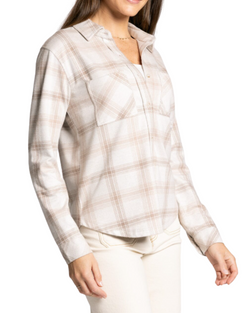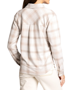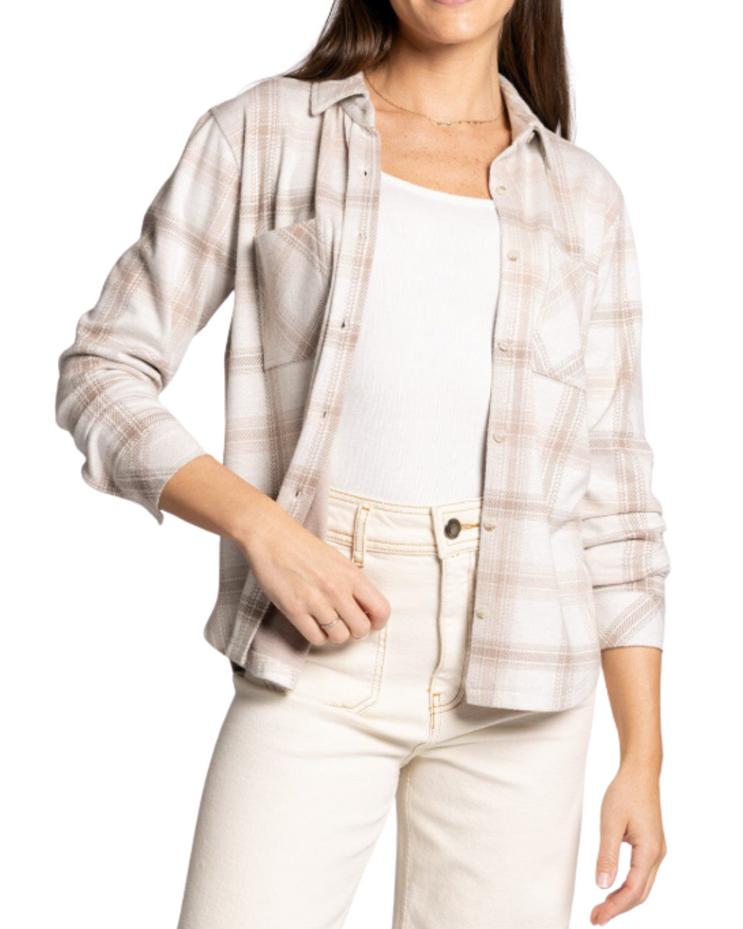 The Saja Shirt in mauve taupe plaid brings cozy vibes and versatile style to your wardrobe—layer it up or wear it solo for effortless comfort all day long.