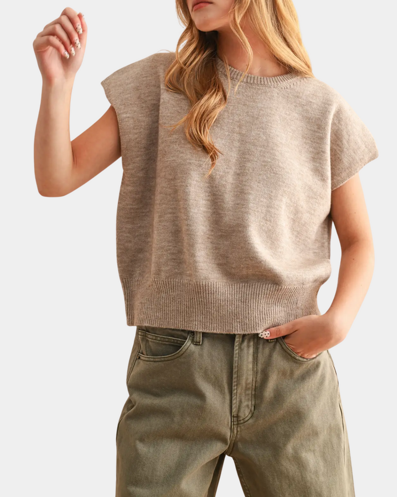 Loose Fit Short Sleeve Top - Tan