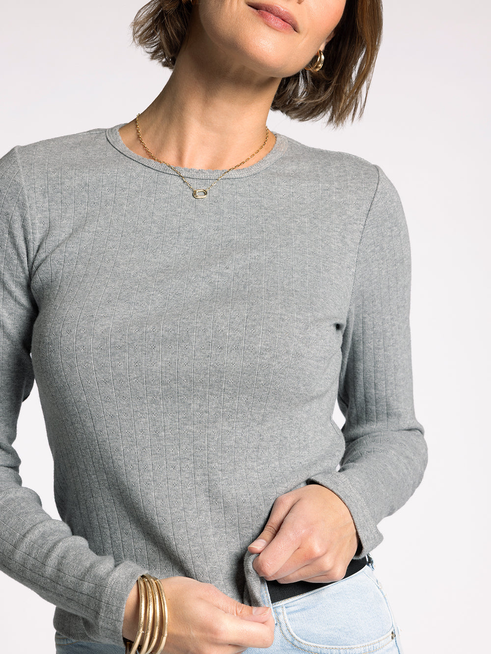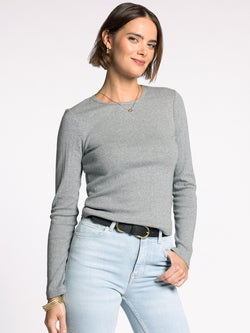 The Luisa Top in heather grey is a refined essential that bridges casual and elevated styling. Its neutral tone and streamlined construction make it an indispensable layering piece.