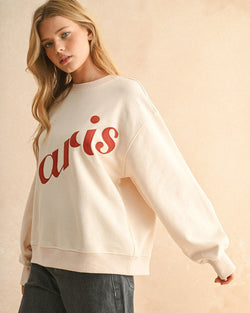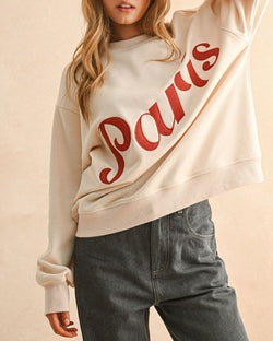 This adorable patch front sweatshirt reads "Paris" on the front. Soft, comfy and chic!