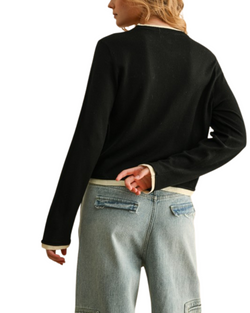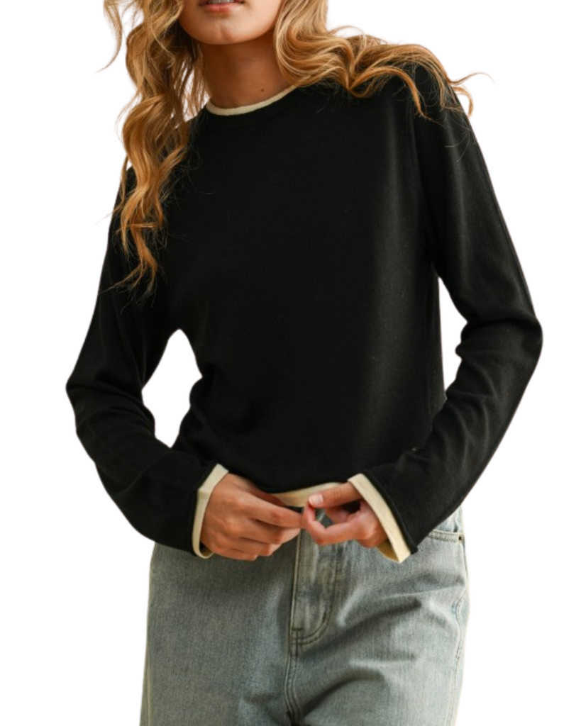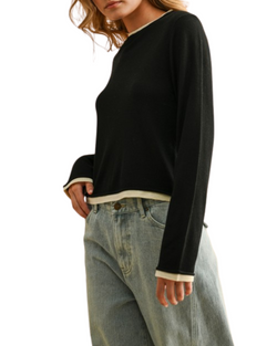 This layered black top brings a playful edge with its sleek design and stylish dimension. It’s the perfect way to add fun, flirty layers.