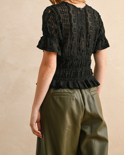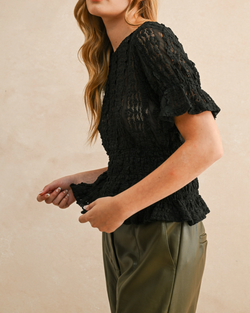 Add a flirty touch to your look with this black short sleeve lace blouse, perfect for day-to-night charm. Lightweight and stylish, it’s your new favorite twist on classic elegance.