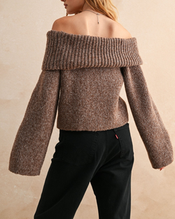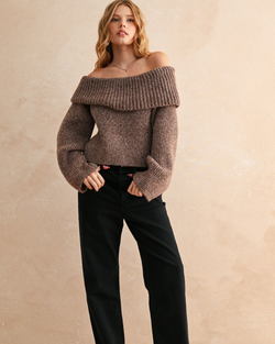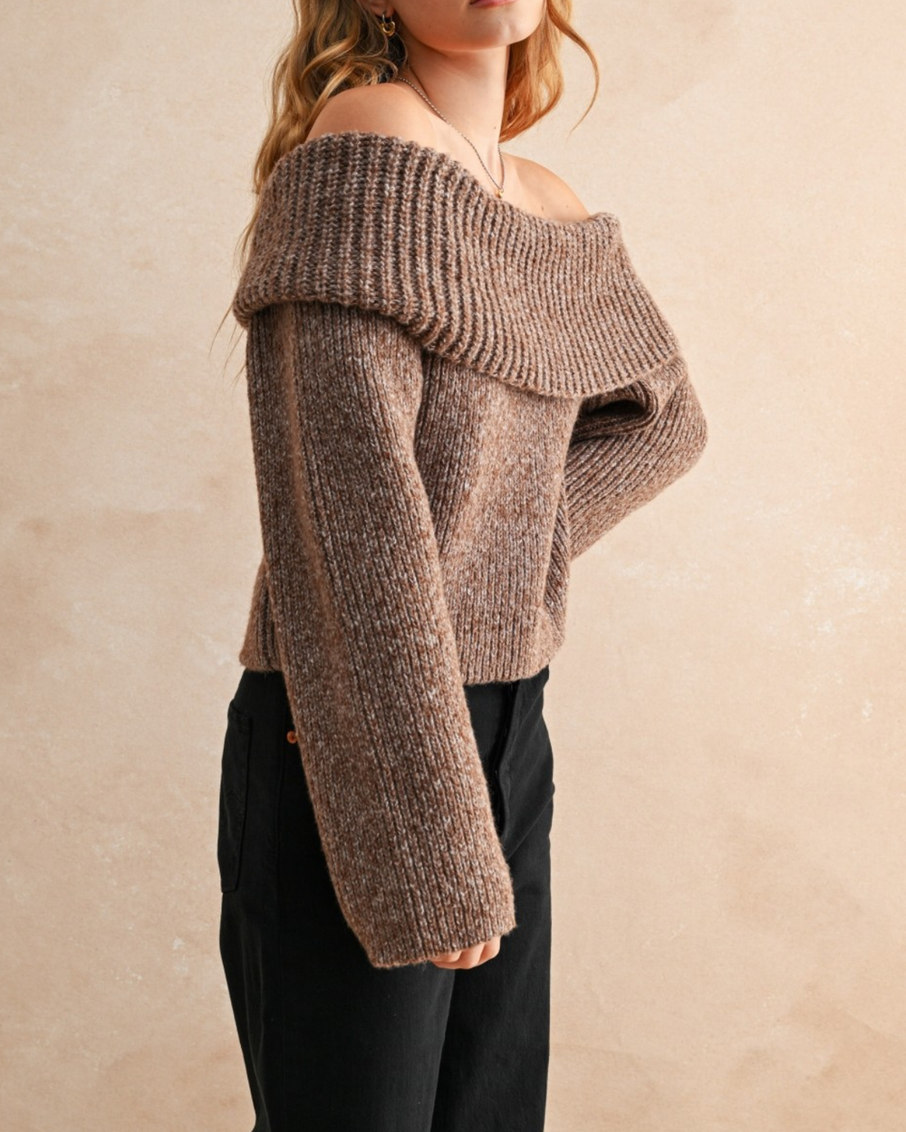 Elevate your wardrobe with this elegant brown off-the-shoulder sweater, designed to highlight your neckline with subtle sophistication. Crafted for comfort and style, it seamlessly transitions from day to evening wear.