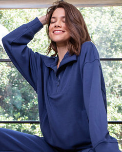 This ultra soft quarter zip pullover is made from a modal poly spandex fabrication that is butter smooth with cooling fabric. Featuring a quarter zip, mock neckline, kangaroo pocket and long sleeves, this is your new favorite casual wear piece.