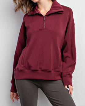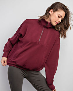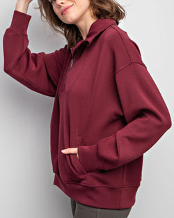 This ultra soft quarter zip pullover is made from a modal poly spandex fabrication that is butter smooth with cooling fabric. Featuring a quarter zip, mock neckline, kangaroo pocket and long sleeves, this is your new favorite casual wear piece.
