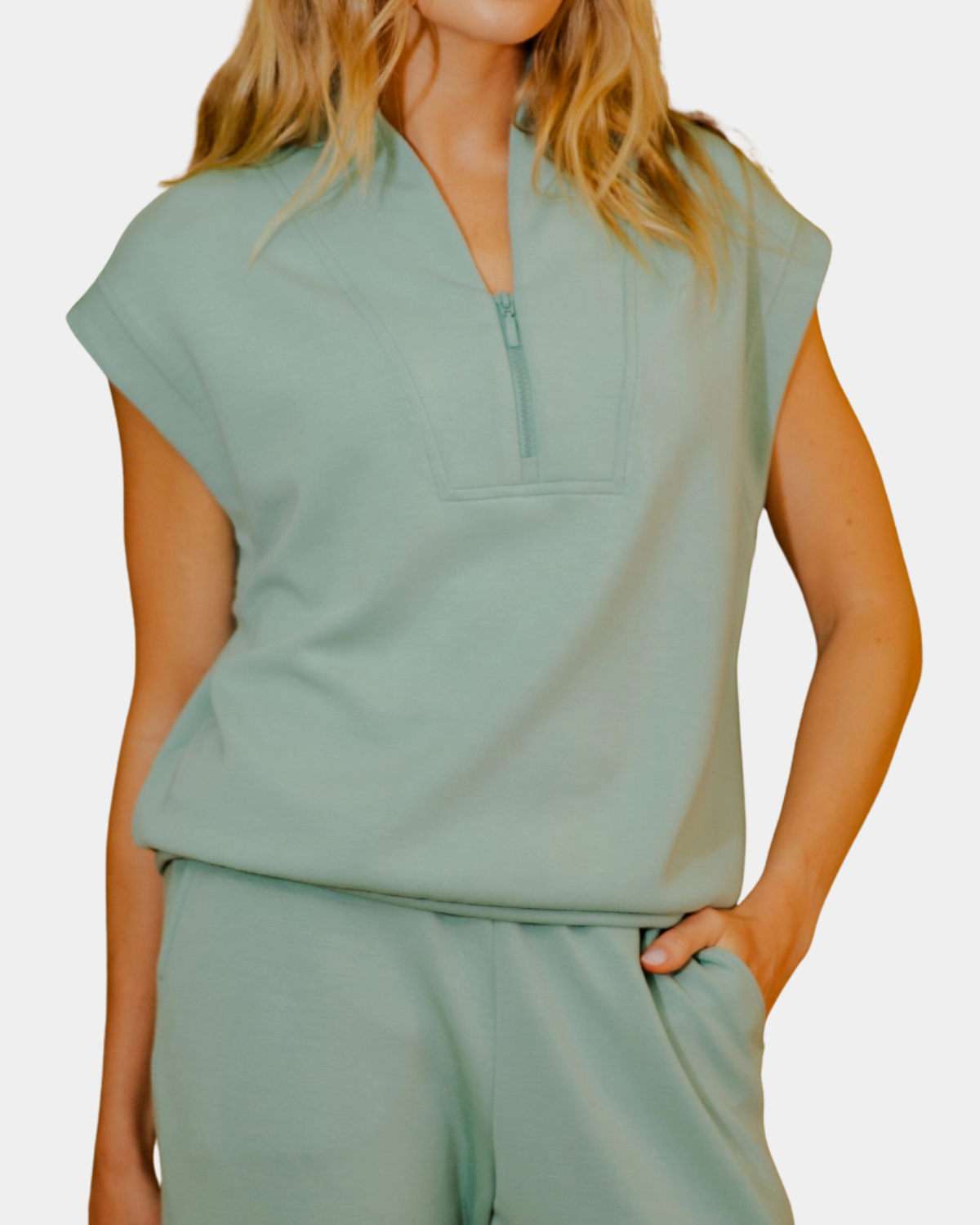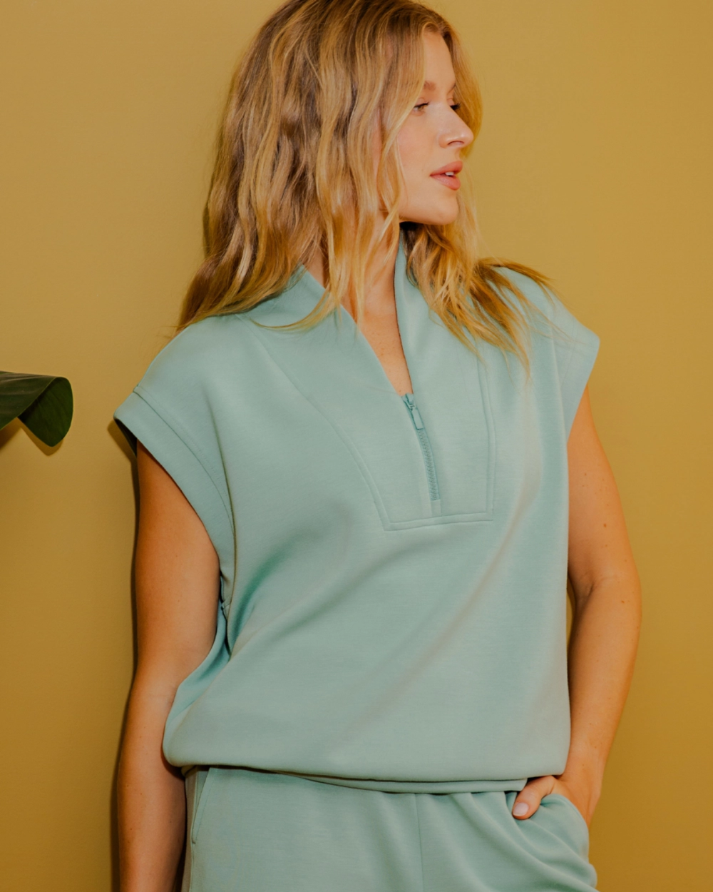 This breezy Modal Scuba Sleeveless Top in gorgeous Fern is as comfy as it is chic. The silky-smooth fabric and flattering V-neck make it perfect for layering or flying solo. Pair it with our matching joggers for an effortlessly put-together vibe.