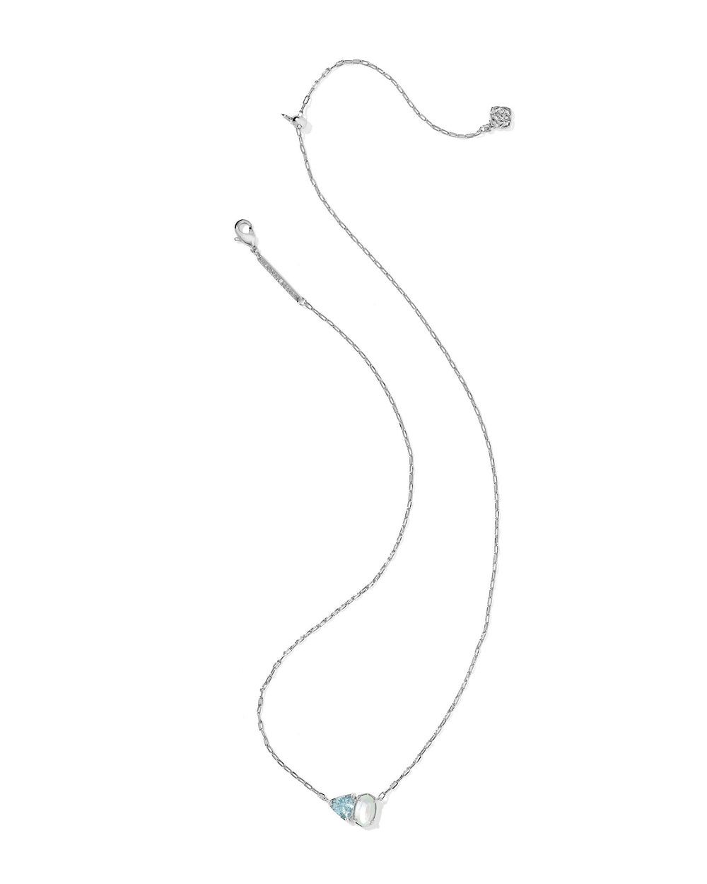 The Tatum Short Pendant Necklace reimagines the toi et moi aesthetic with the Kendra Scott signature Elisa silhouette and trillion-cut stone in March birthstone tones. Crafted on a delicate silver chain, this refined piece transitions seamlessly from daily wear to meaningful occasions.