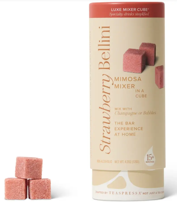 This berry-drink mixer cube elevates any caliber of champagne with the fragrant appeal of luscious, juicy strawberries. A twist on a traditional mimosa, we created this mixer cube as a buildable and travel-friendly alternative to fresh juice for champagne, bubbly, or sparkling water.