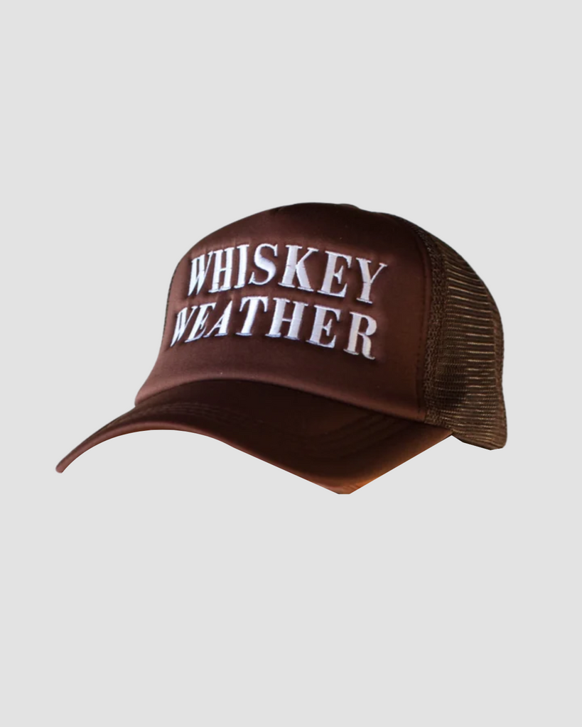 Top off your look with the Whiskey Weather Trucker Hat in rich brown—where rugged charm meets sunny days. Perfect for keeping the sun at bay while adding a dash of laid-back adventure to any outfit.