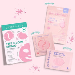 The Glow Memo is an expertly curated Serve Chilled™ Rosè skincare routine that preps skin for a radiant, flawless base. This targeted trio—eye patches, sheet mask, and lip patches—delivers intensive hydration to revitalize dull, tired skin while plumping and smoothing for a polished finish. Perfect for makeup application or standalone glow.