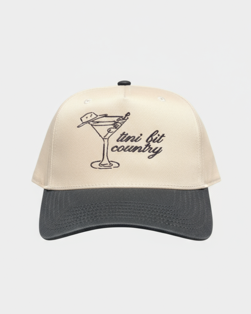 Add a dash of fun to your look with our "Tiny Bit Country" 5-panel hat, featuring cool black and khaki colors and playful black embroidery. It’s the perfect mix of city vibes and country flair for wherever your day takes you!