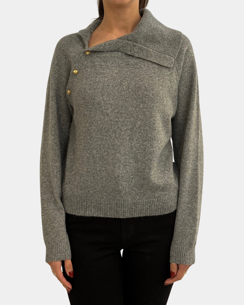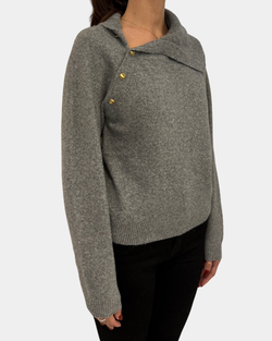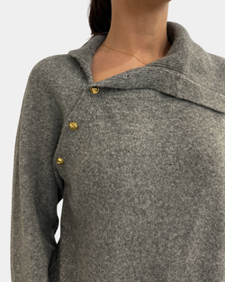 This Heather Grey Asymmetrical Button Sweater offers a refined silhouette with its unique button detailing and modern cut. Crafted for both comfort and style, it elevates any outfit.
