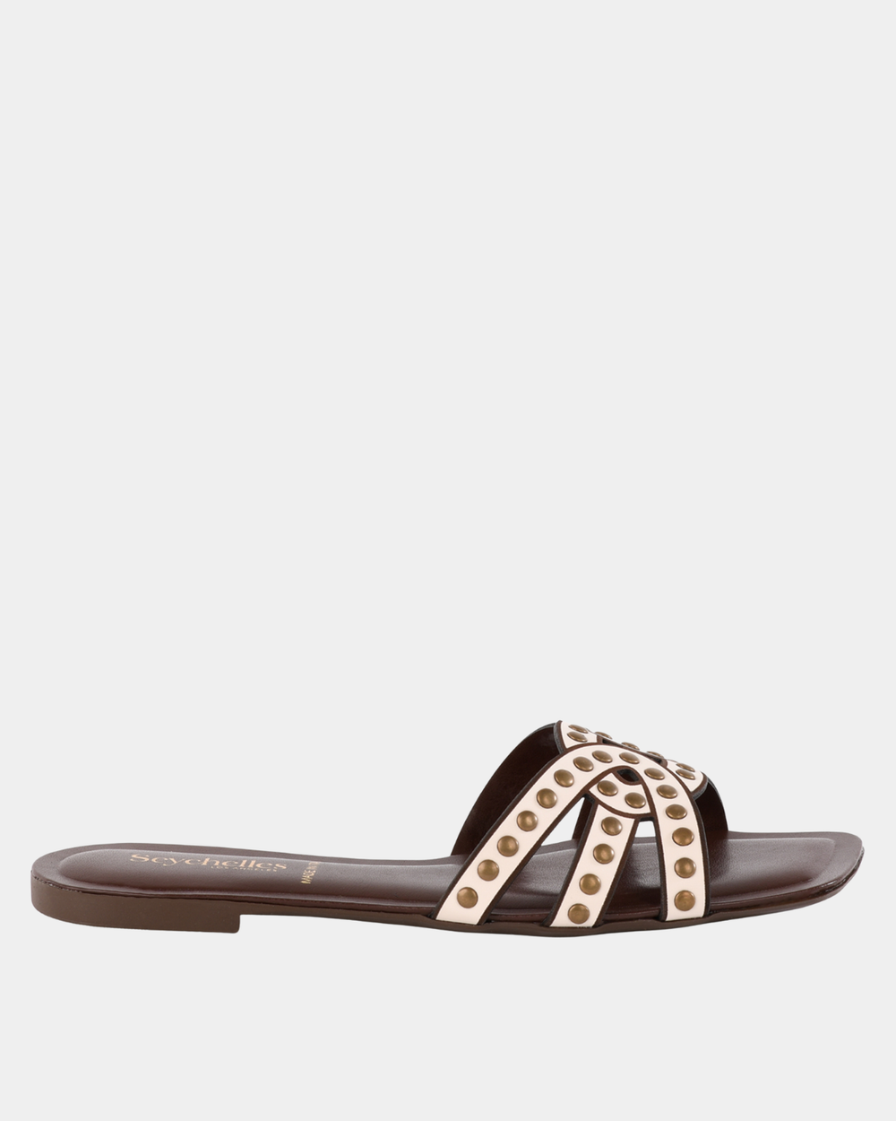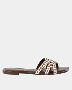 The Treasure Studded Slide Sandals in off-white offer understated elegance with carefully placed studs that catch the light. These versatile slides transition seamlessly from casual to polished occasions, delivering both comfort and refined style for the modern woman.