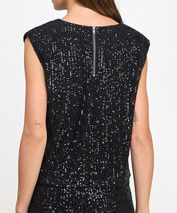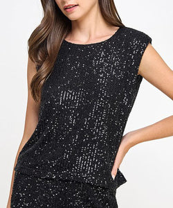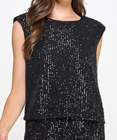 Shimmer and shine in this Sequin Sleeveless Top in classic black. Perfect for a night out, this top adds sparkle and dazzle to any outfit. With its sleeveless design, you can stay cool and comfortable while looking stylish. So go ahead, let your outfit do the talking!