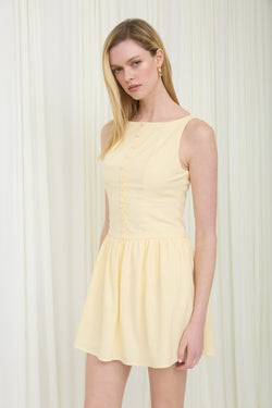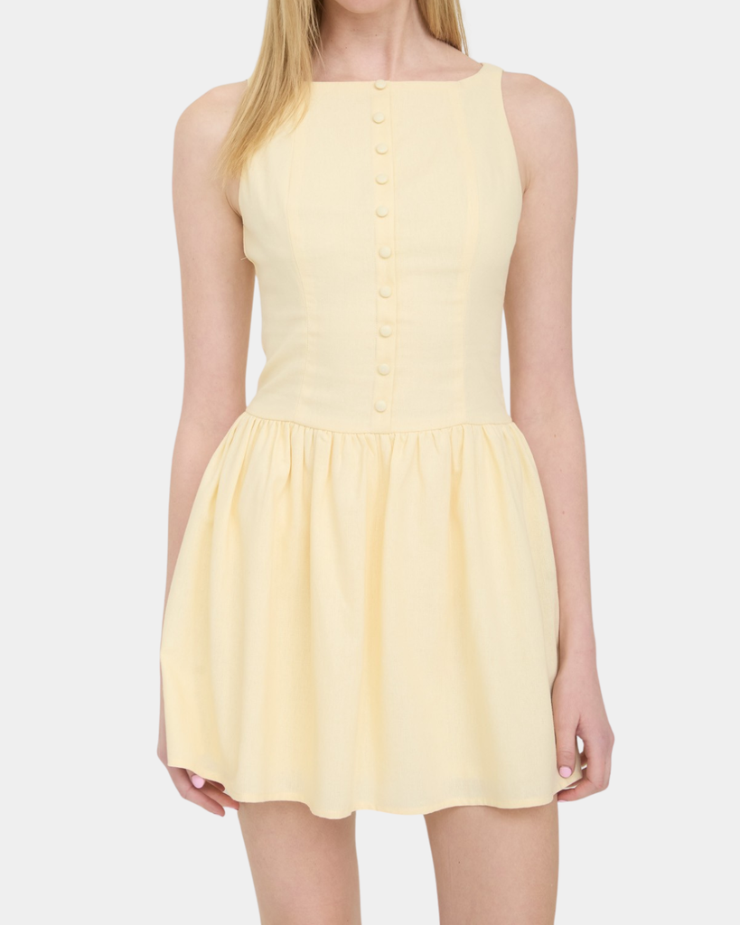 This butter yellow button-down sleeveless mini is your go-to for effortless summer style. Classic silhouette with a playful pop of color—perfect for brunch dates, casual outings, or whenever you need a cheerful wardrobe pick-me-up.