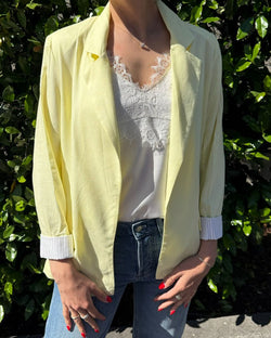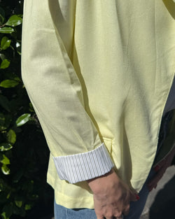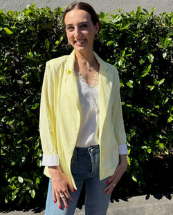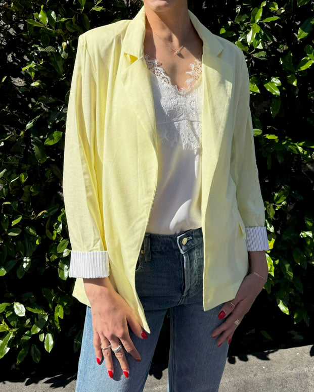 This lightweight, single-breasted blazer features a modern touch: pinstripe lining visible when the sleeves are cuffed. Crafted from a soft linen blend, it's a versatile piece perfect for adding a touch of sophistication to any outfit.
