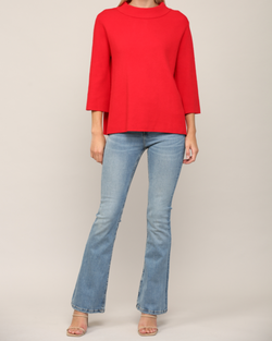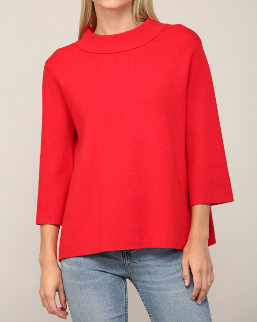 Add some flair to your wardrobe with this red Mock Neck Pull Over Sweater, complete with playful bell sleeves. Cozy and chic, it’s your new go-to for fun, flirty style.