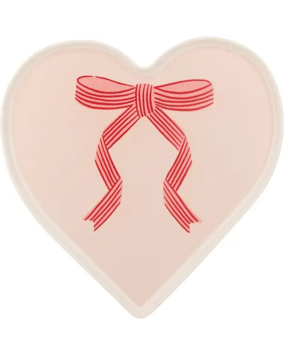 This heart-shaped tray is perfect for your Valentine's Day festivities. Made of bamboo, it features a charming bow design. Serve your loved ones in style with this unique tray that is both functional and adorable.