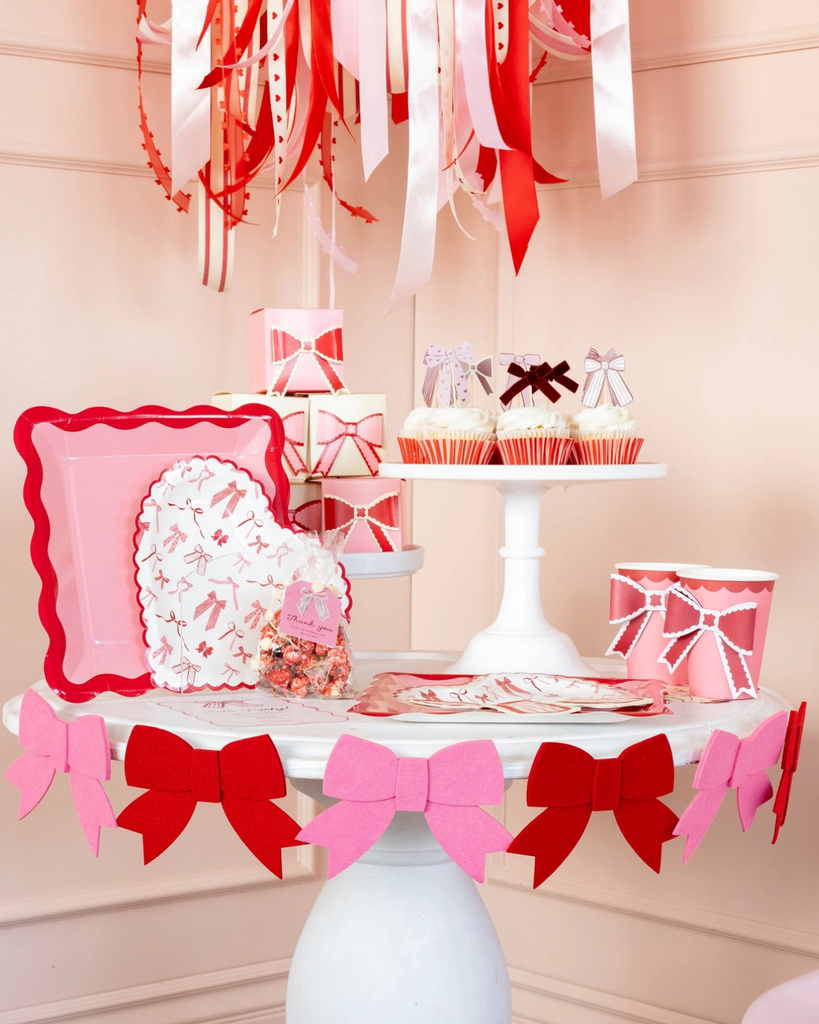 Add instant charm to your Valentine's Day, wedding, or romantic event with this delightful Felt Bow Banner. Featuring sweet felt bows in pink and red, it's the perfect accent for doorways, mantels, and photo spots that'll have your guests smiling.