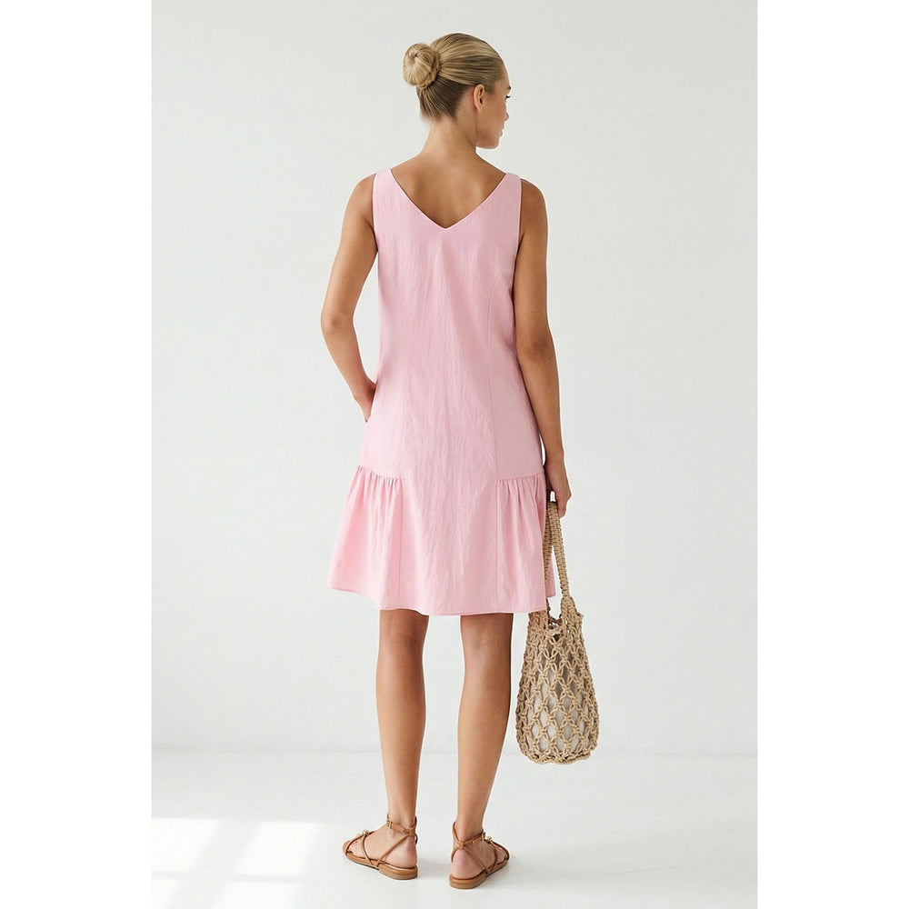 Cute and flirty, this pink mini dress features charming button details and playful ruffles that add movement and personality. Perfect for a fun day out or casual weekend vibes. Slip it on and feel fabulous.