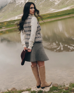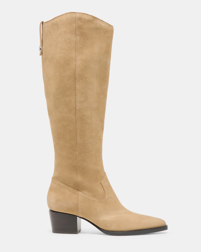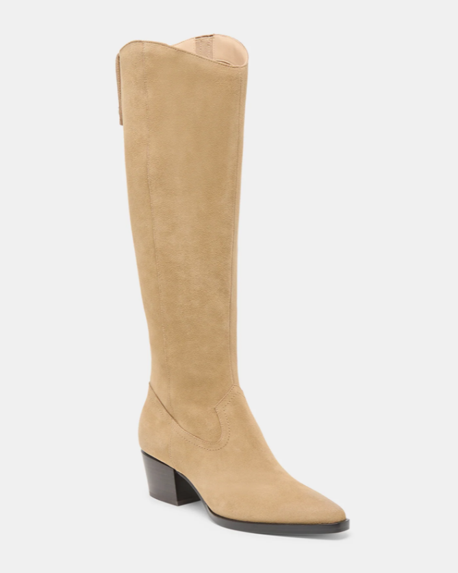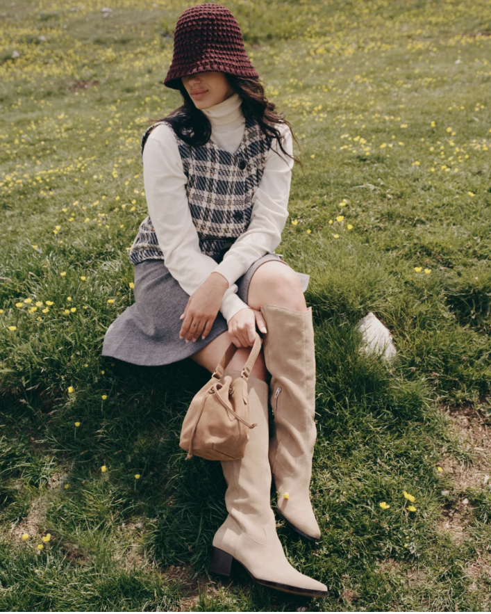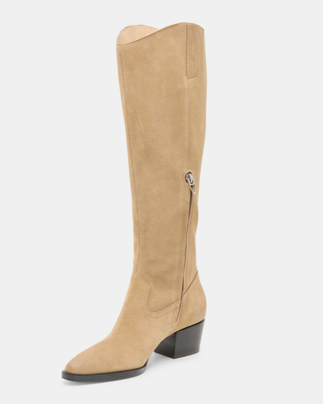 Wear VIRONA H2O’s timeless and flattering design this year and next. Crafted using recycled materials, this tall waterproof boot’s stacked block heel and curved top add a chic upgrade to denim and dresses. Wear neutral suedes out in any weather.
